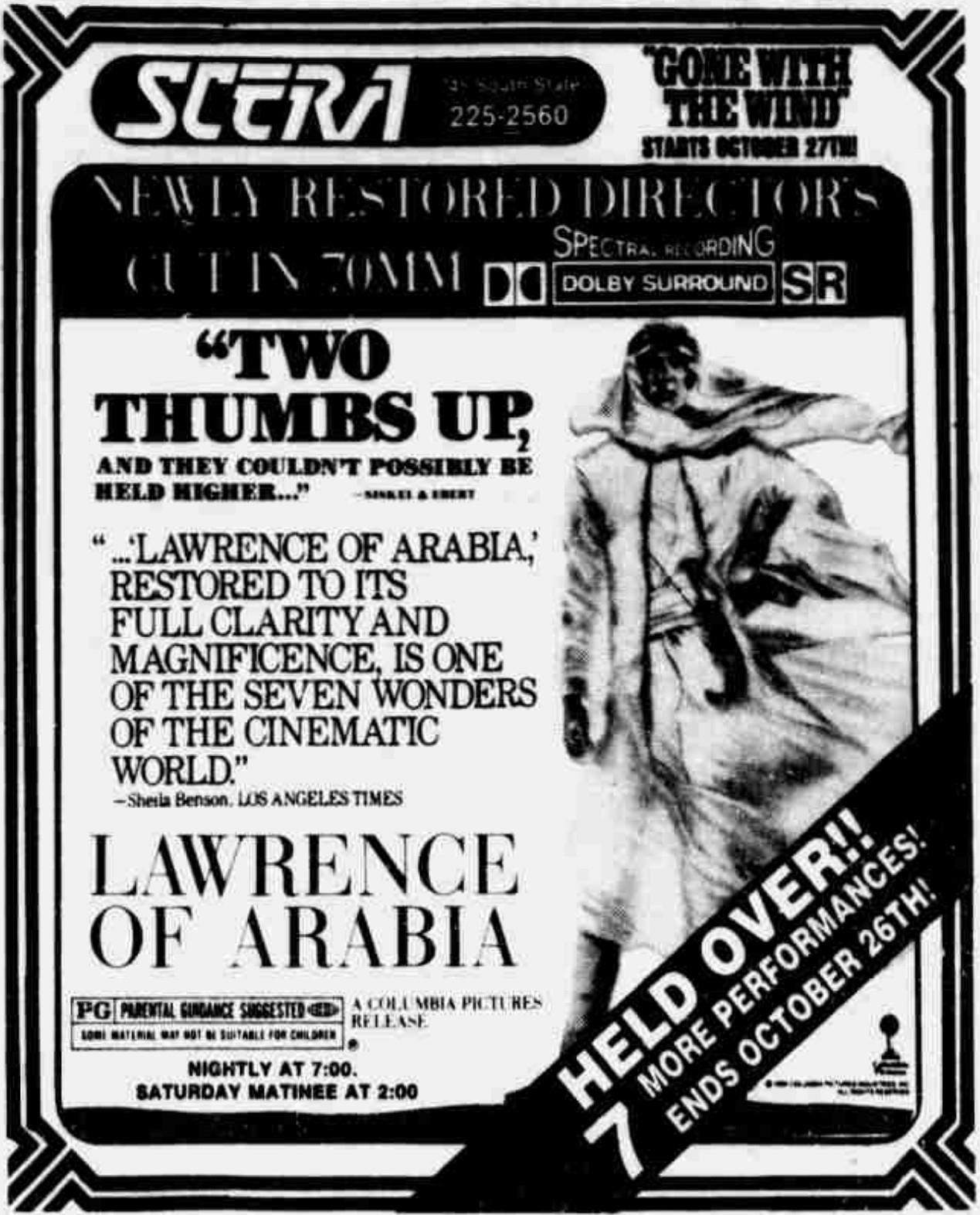 SCERA scheduled Lawrence of Arabia for a one-week run, but the restored 70mm film was held over for two addtional weeks.